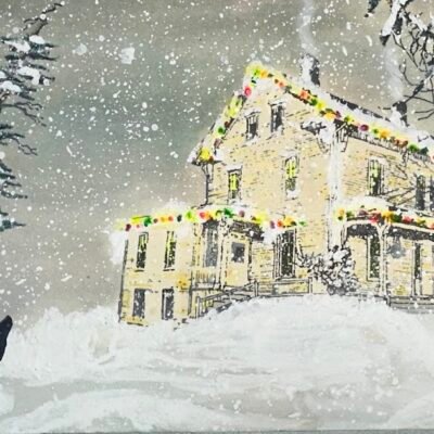 Hello all! My card this week is a winter card- hope you enjoy. I began the card by stamping the house and then the trees