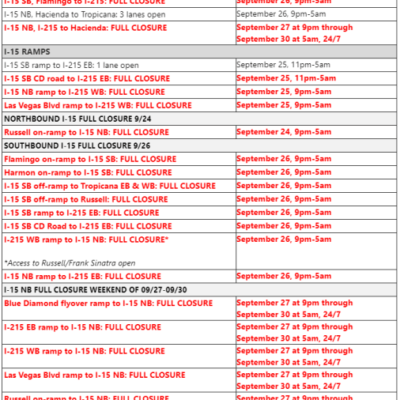 Major overnight closures on I-15 ahead this week in Las Vegas