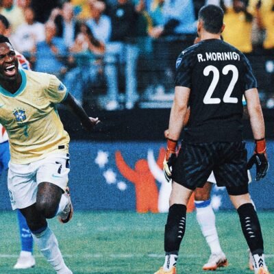 Vinícius Junior scored two first-half goals to lead Brazil to a 4-1 victory over Paraguay on Friday night and put itself in position to advance