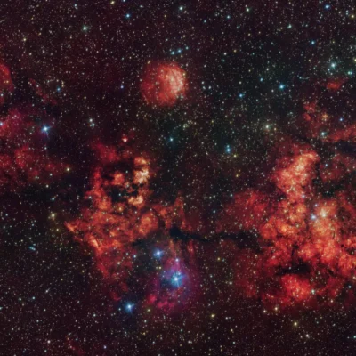 This image shows a cloud of gas and dust, shaped like a cosmic bat. The image was obtained mostly in visible light with the VLT