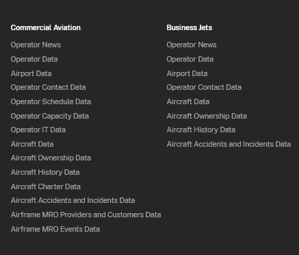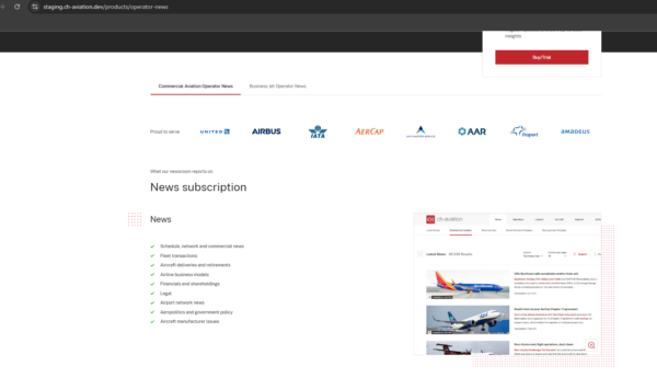 For example, clicking Operator News under Commercial Aviation will now redirect to the Commercial Aviation Operator News product page.